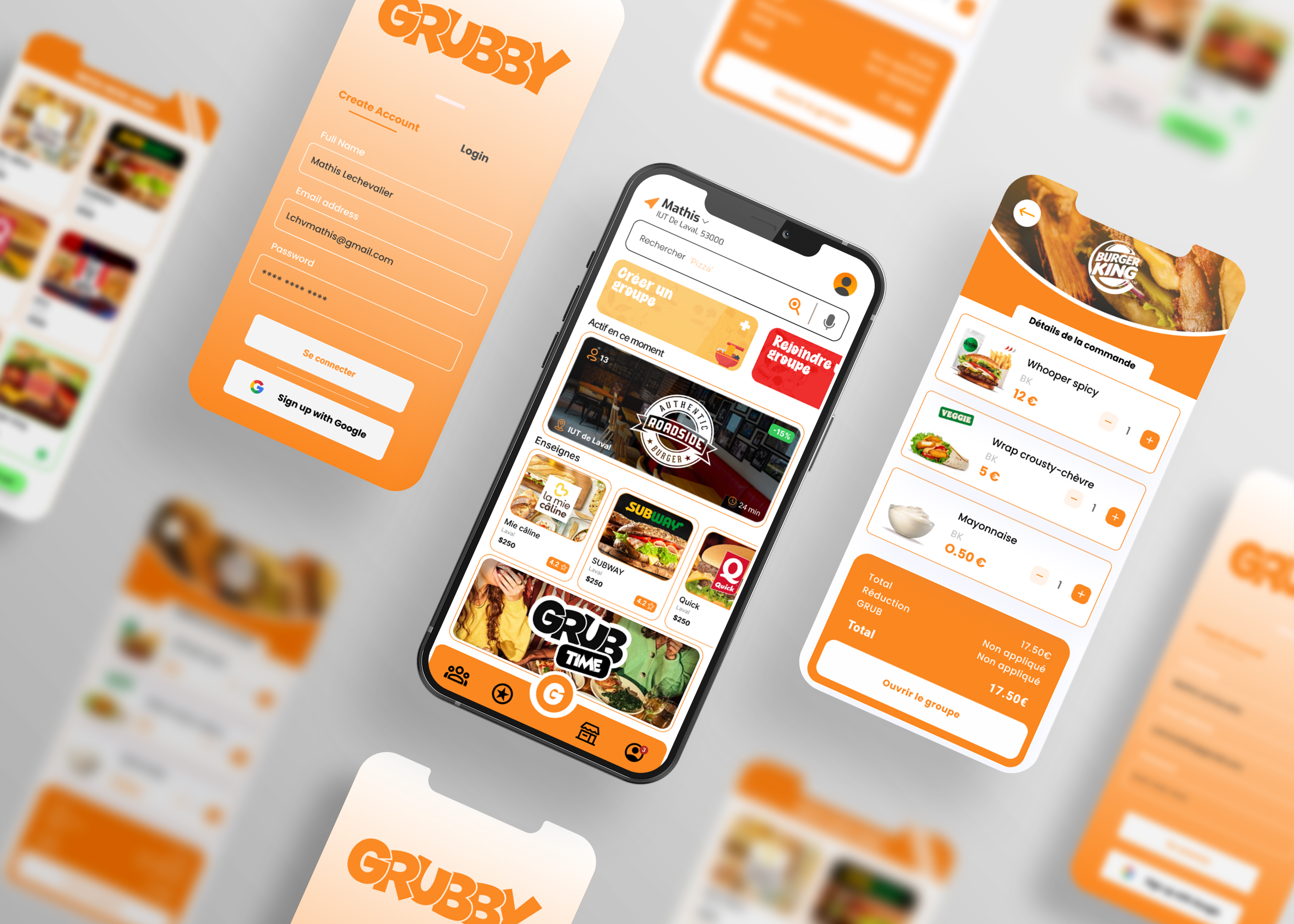 GRUBBY est une application fictive réalisé en SAE dont le but est de faire économiser de l'argent aux étudiants. Le concept est simple, il s'agit de commande réalisé en groupe , plus il y a de membres pour la comande , plus la réduction est élevé. Voici le lien FIGMA : https://www.figma.com/proto/SJiPIDjvK6IWaD6zaUfFxD/GRUBBY-APP?page-id=0%3A1&node-id=51-8218&starting-point-node-id=1%3A41&t=hgfrY7e1zoPD3Etg-1
